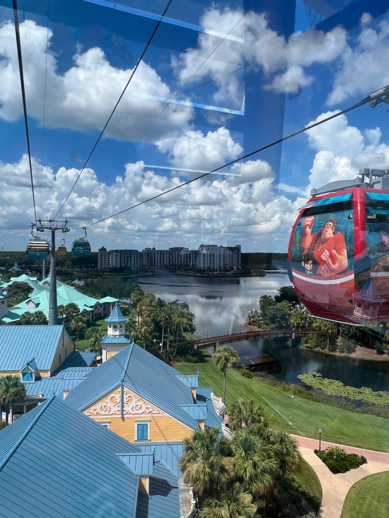 Another reason Disney’s Caribbean Beach Resort has stolen our hearts is its unbeatable access to the Disney Skyliner. For our family, it’s more than just transportation, it’s an attraction in itself. There’s something so exciting about stepping into a gondola and soaring above the treetops, catching glimpses of the parks and resorts as you glide through the sky. Our kids treat it like the first “ride” of the day, and honestly, we feel the same way.