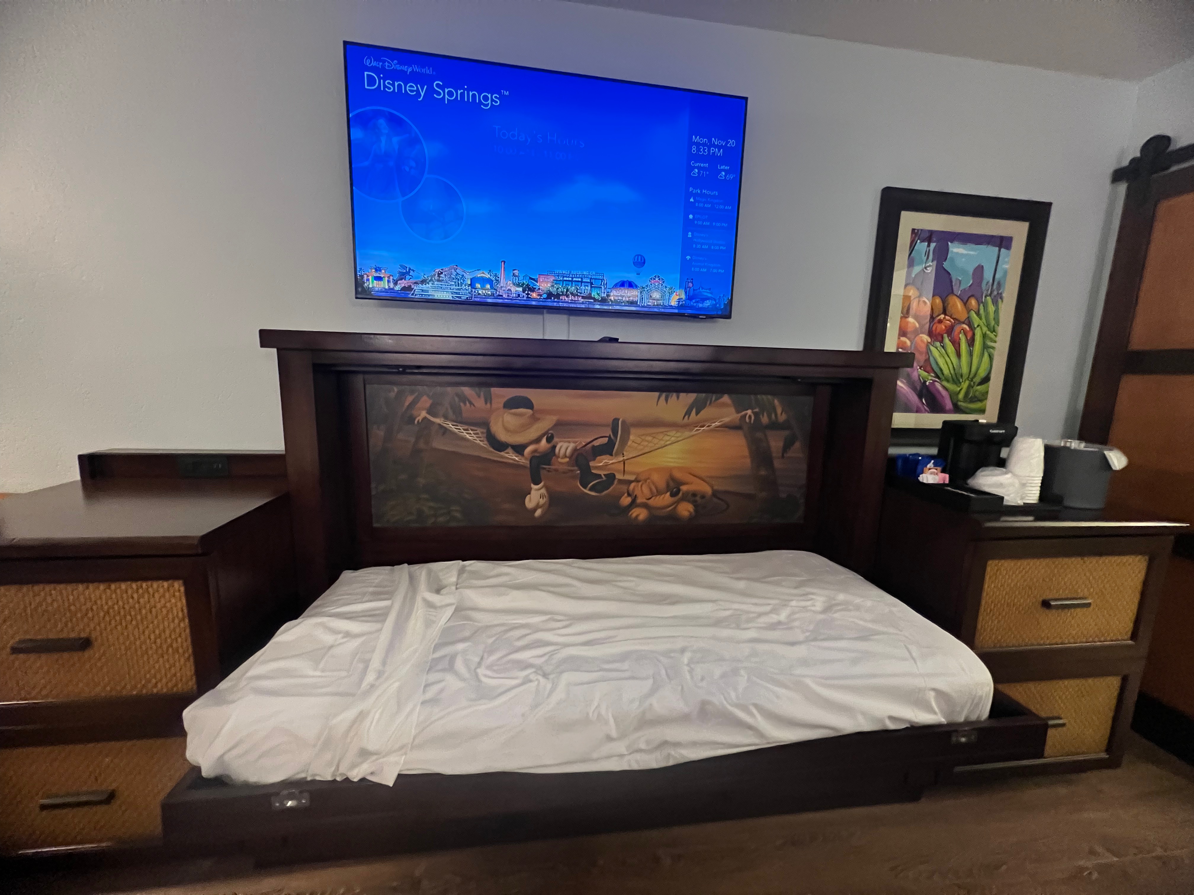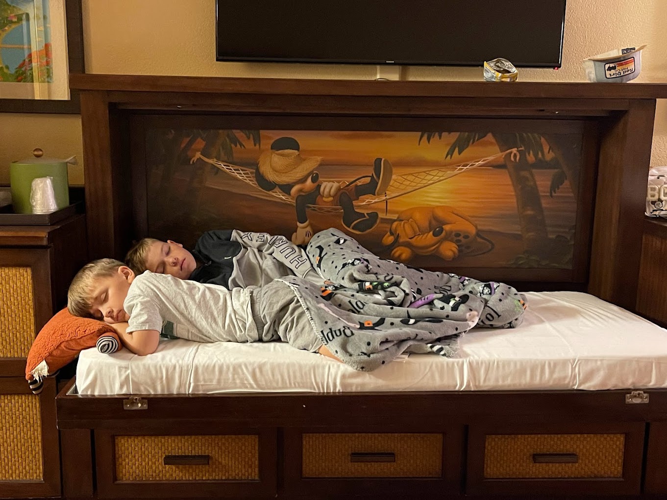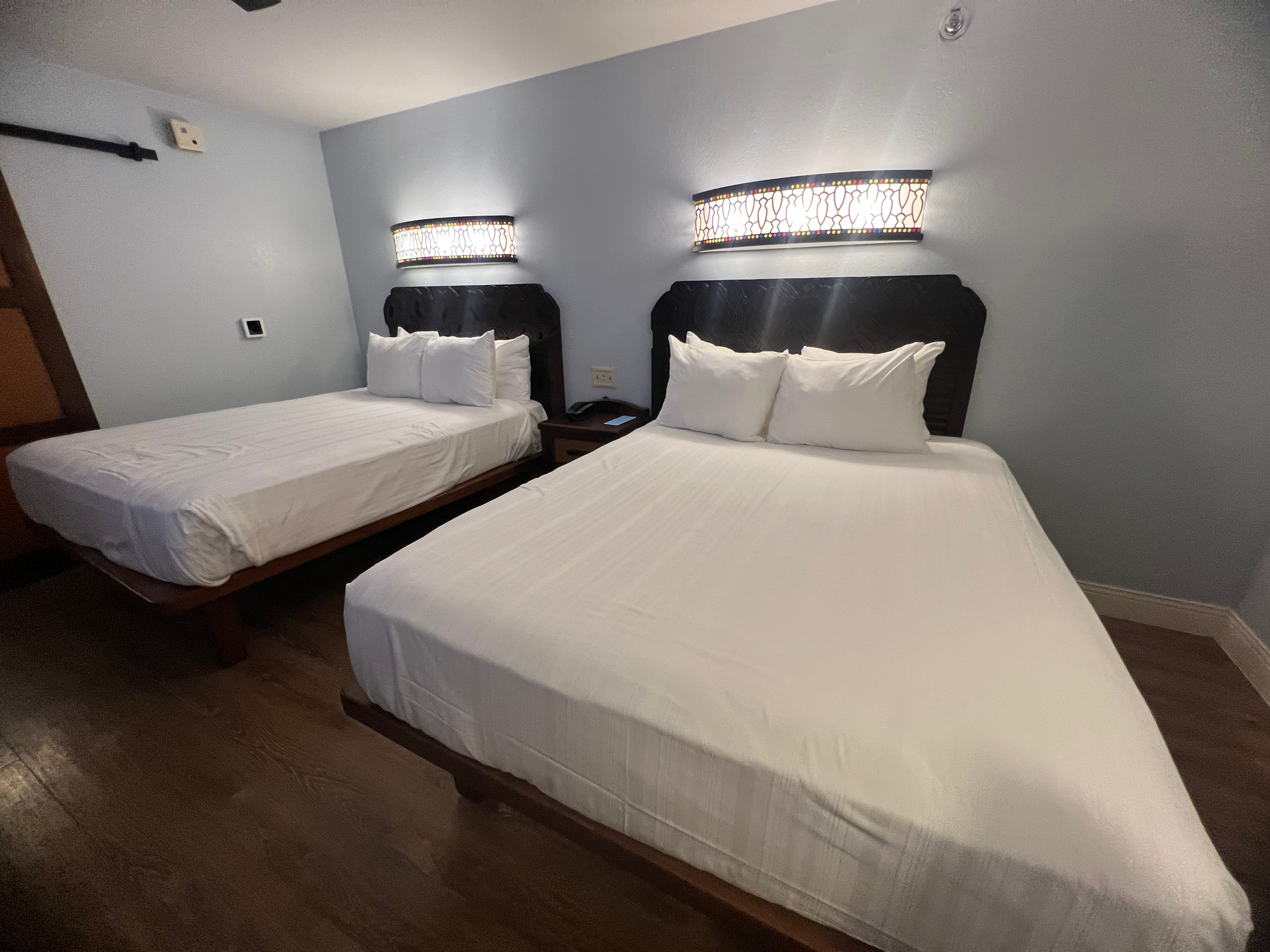 Finding a Disney resort room that comfortably sleeps five without jumping to the Deluxe category can be tricky, but Caribbean Beach makes it possible. The rooms that sleep 5, here include two queen beds plus a pull-down Murphy-style bed, which is just right for families like ours. It gives us plenty of space to spread out at night, while still feeling cozy and inviting. The tropical-inspired décor fits perfectly with the resort’s island theme, and there’s plenty of storage for stashing away the gear that comes with traveling as a family of five. We especially love the convenient features like mini-fridges, coffee makers, and the option to request connecting rooms if you’re traveling with an extended family group. For us, these rooms strike the perfect balance between comfort, function, and value. We get the space we need for five, the convenience of modern amenities, and the immersive theming that makes staying at a Disney resort feel like part of the vacation magic.